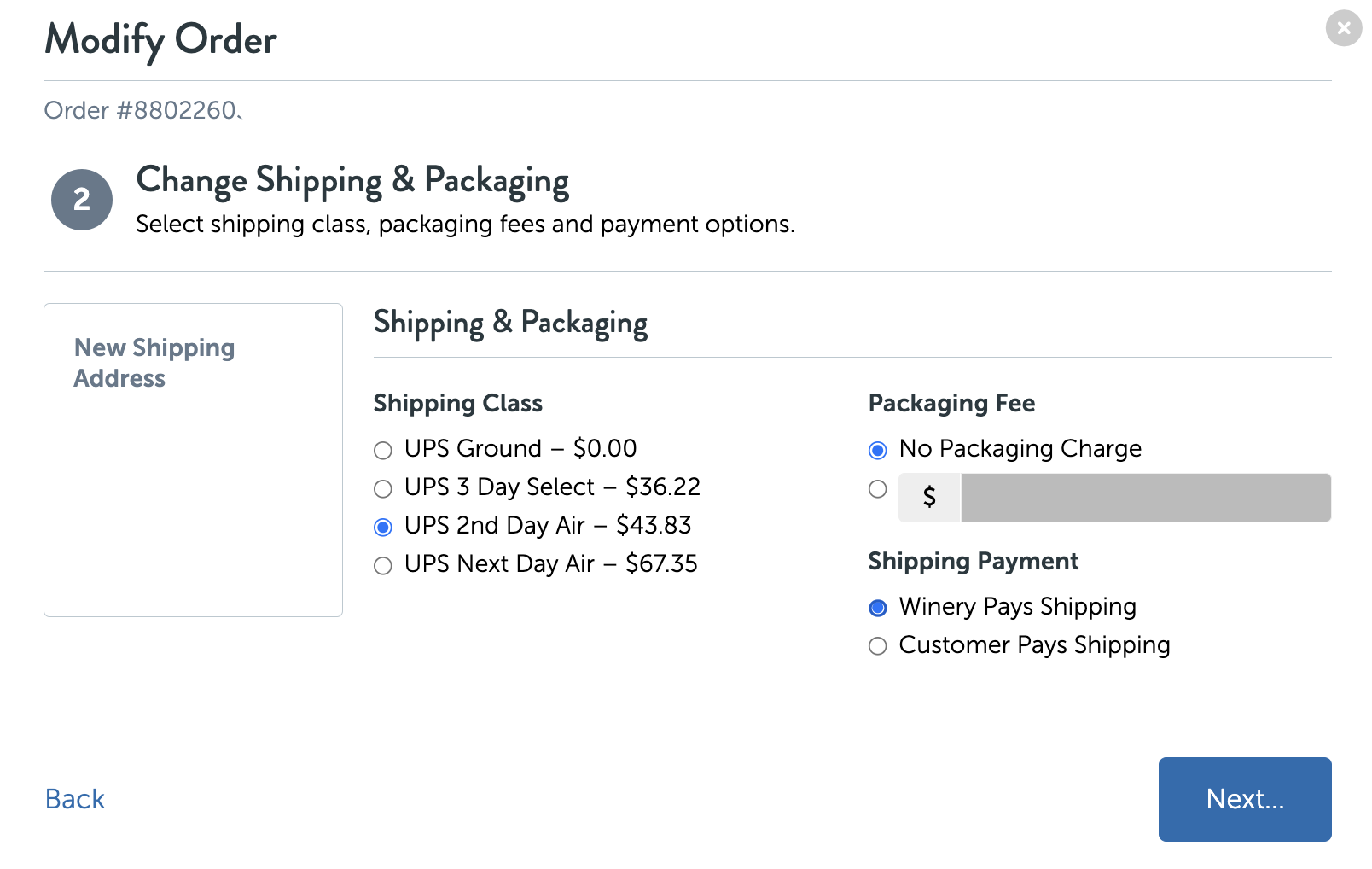 - Under Shipping Payment, choose WINERY PAYS SHIPPING. Click Next...