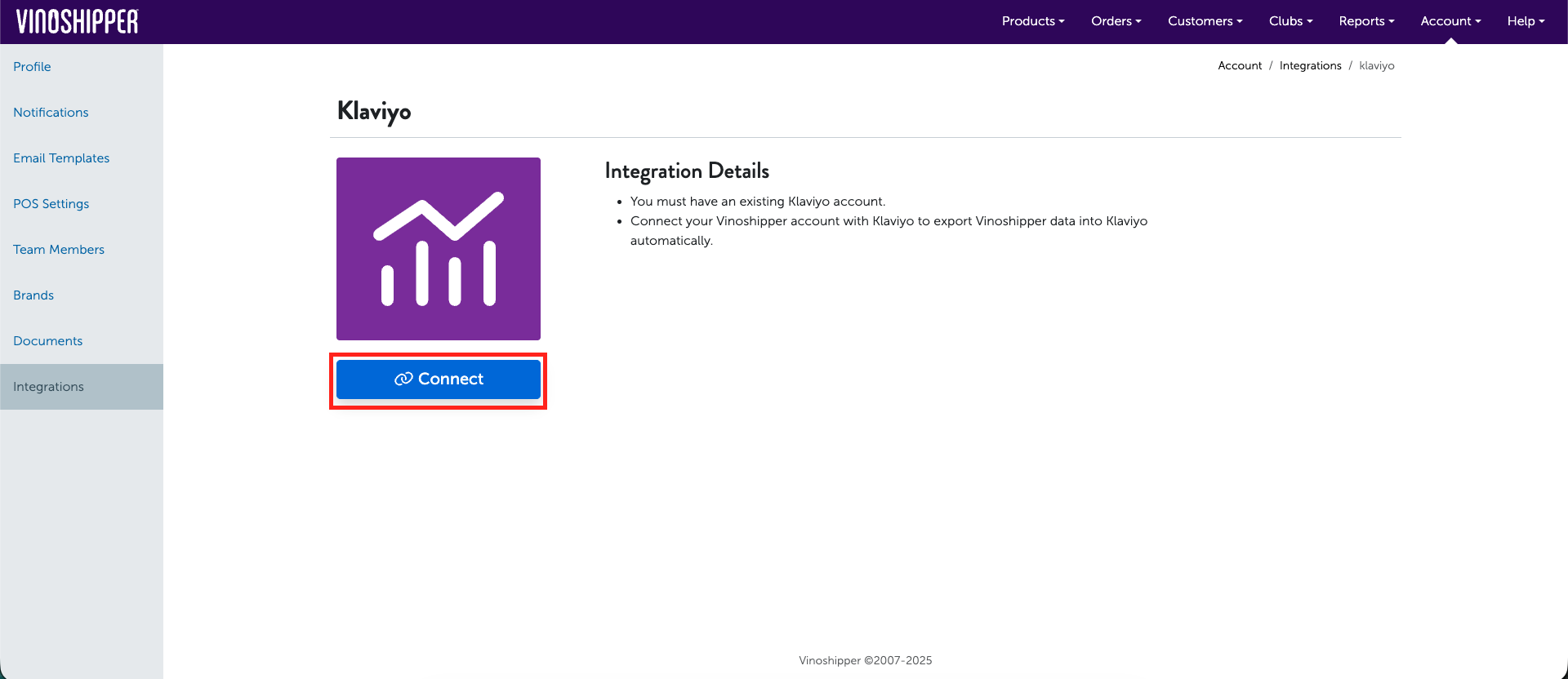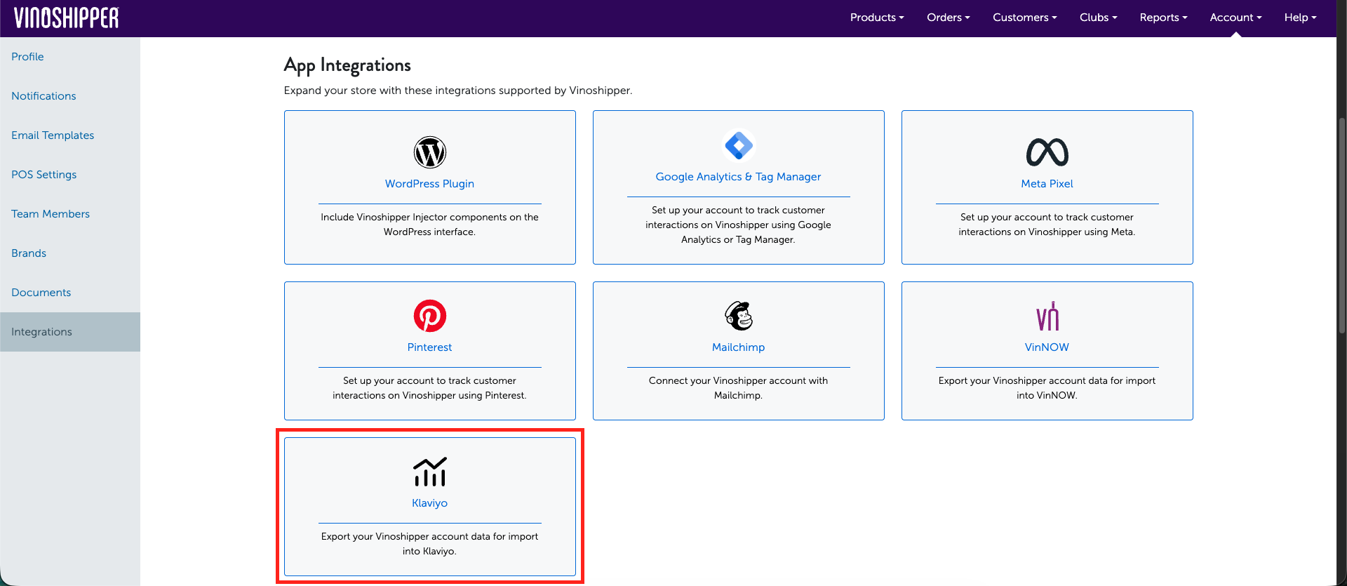 Vinoshipper can now sync to your existing Klaviyo account. To connect your Vinoshipper account to Klaviyo: