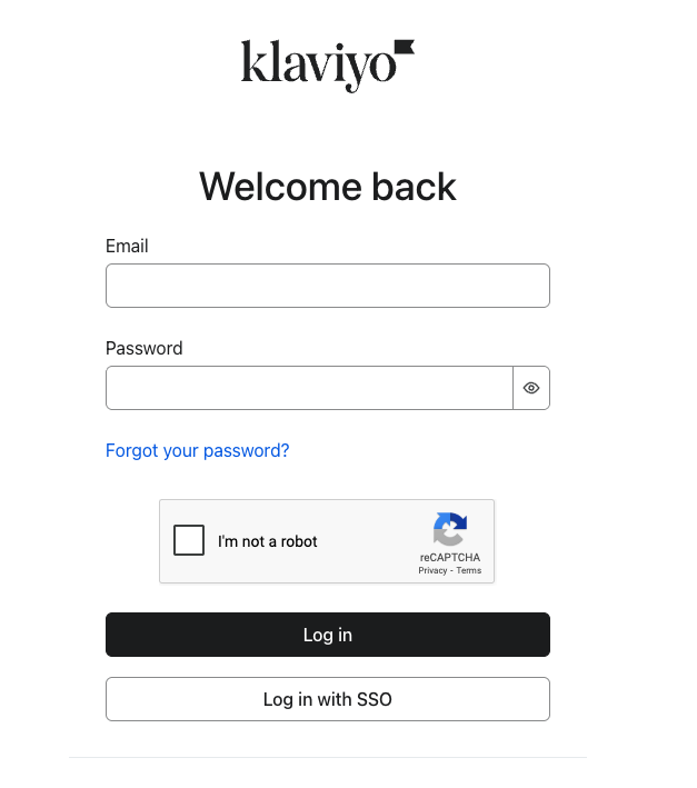 - A new page will open to the Klaviyo website asking you to log into your existing account.